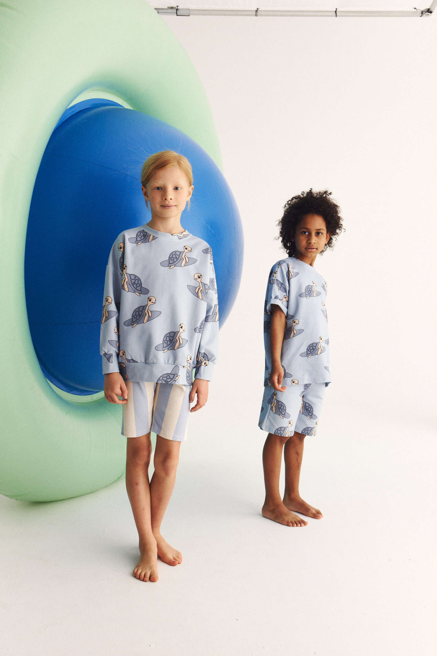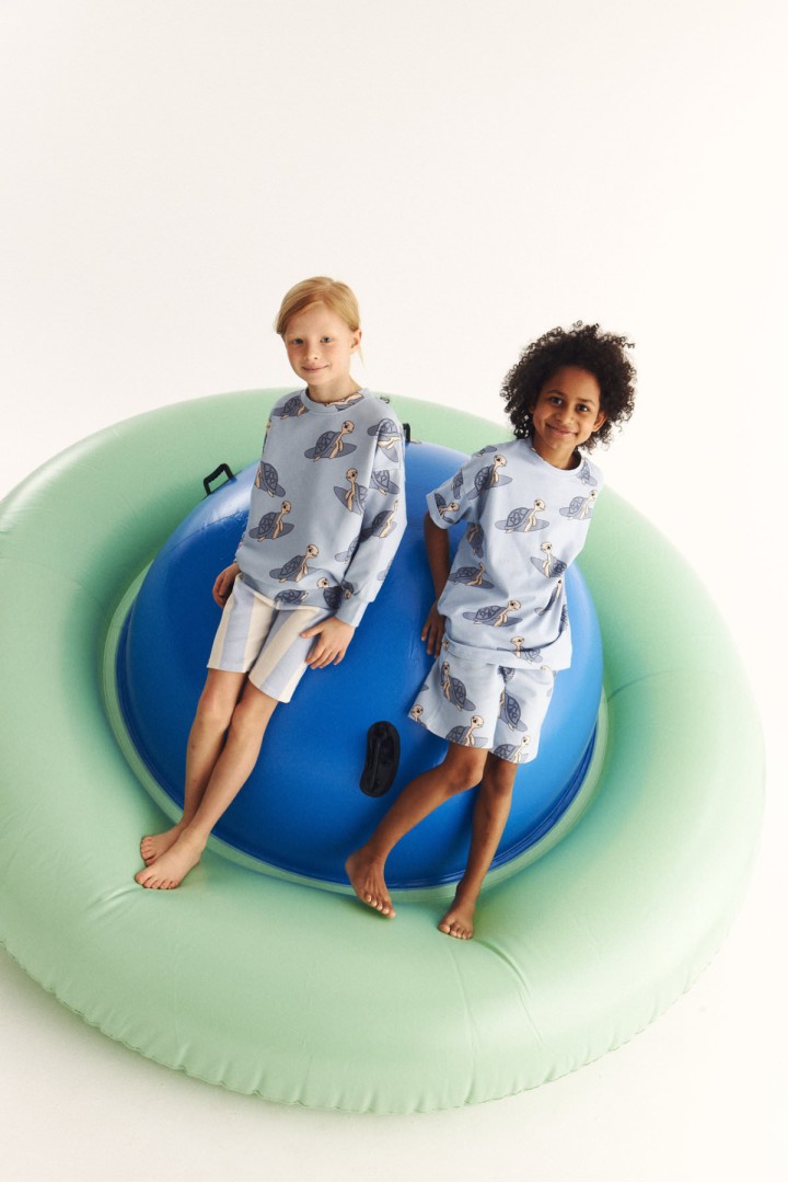 To t-shirt, który robi robotę sam z siebie: jest lekki, wygodny i ma wzór na całej powierzchni, więc nawet najprostszy dół wygląda od razu ciekawie. Krój ma delikatny oversize — daje luz, swobodę ruchu i ten nieprzypadkowy look, który dzieciom nie przeszkadza, a rodzicom bardzo się podoba.