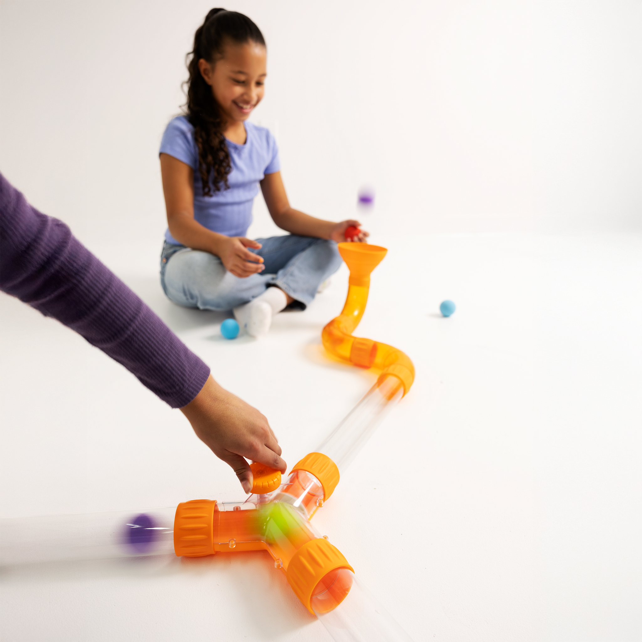 Użyj przełącznika, aby tworzyć rozwidlenia dróg lub zbuduj zamkniętą pętlę z tylko jednym wyjściem! Czy uda Ci się przełączyć kierunek powietrza w idealnym momencie, aby piłeczka trafiła do celu? To świetny trening logicznego myślenia, planowania i refleksu.