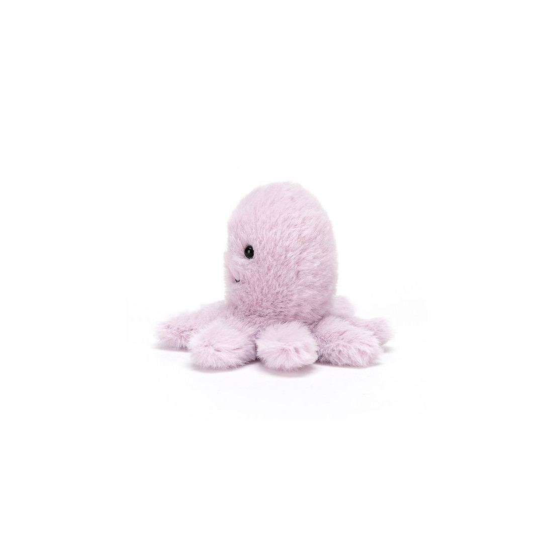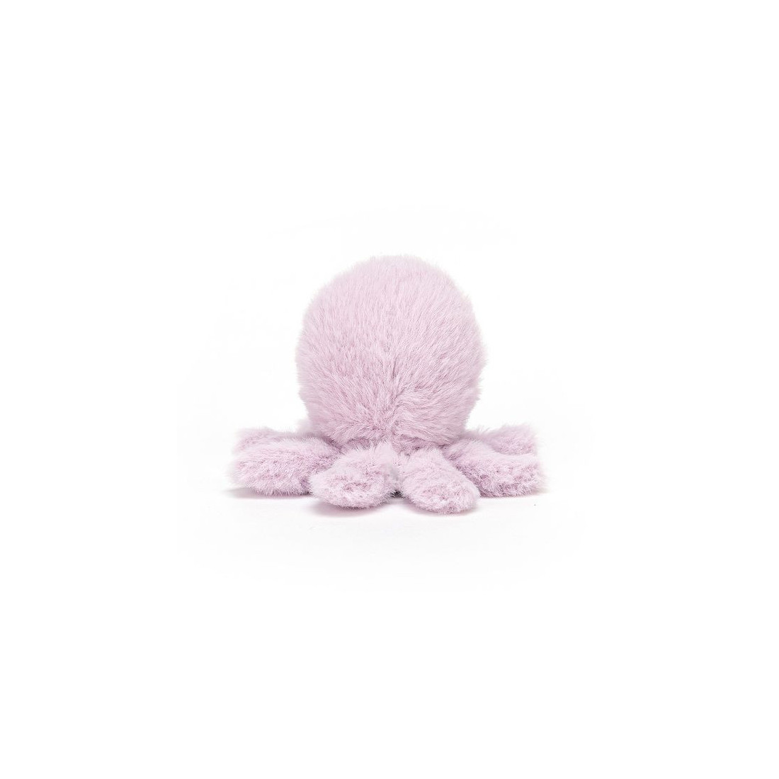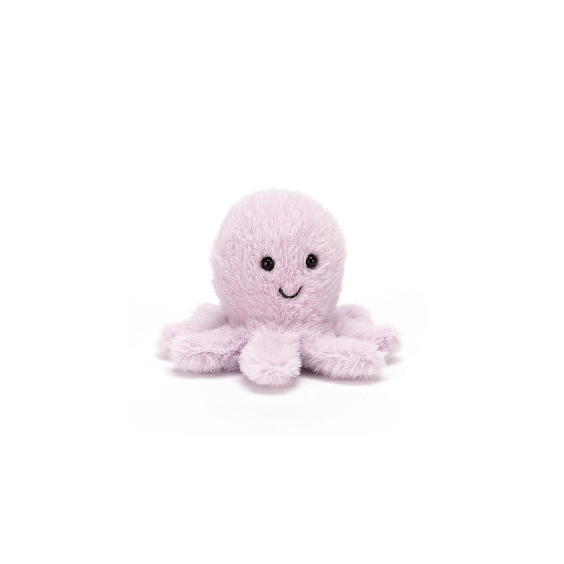 Pełna uroku, bardzo mięciutka Ośmiornica z błyszczącymi oczkami, uśmiechniętą buźką i ośmioma mięciutkimi, poskręcanymi ramionami w kolorze lawendowym.