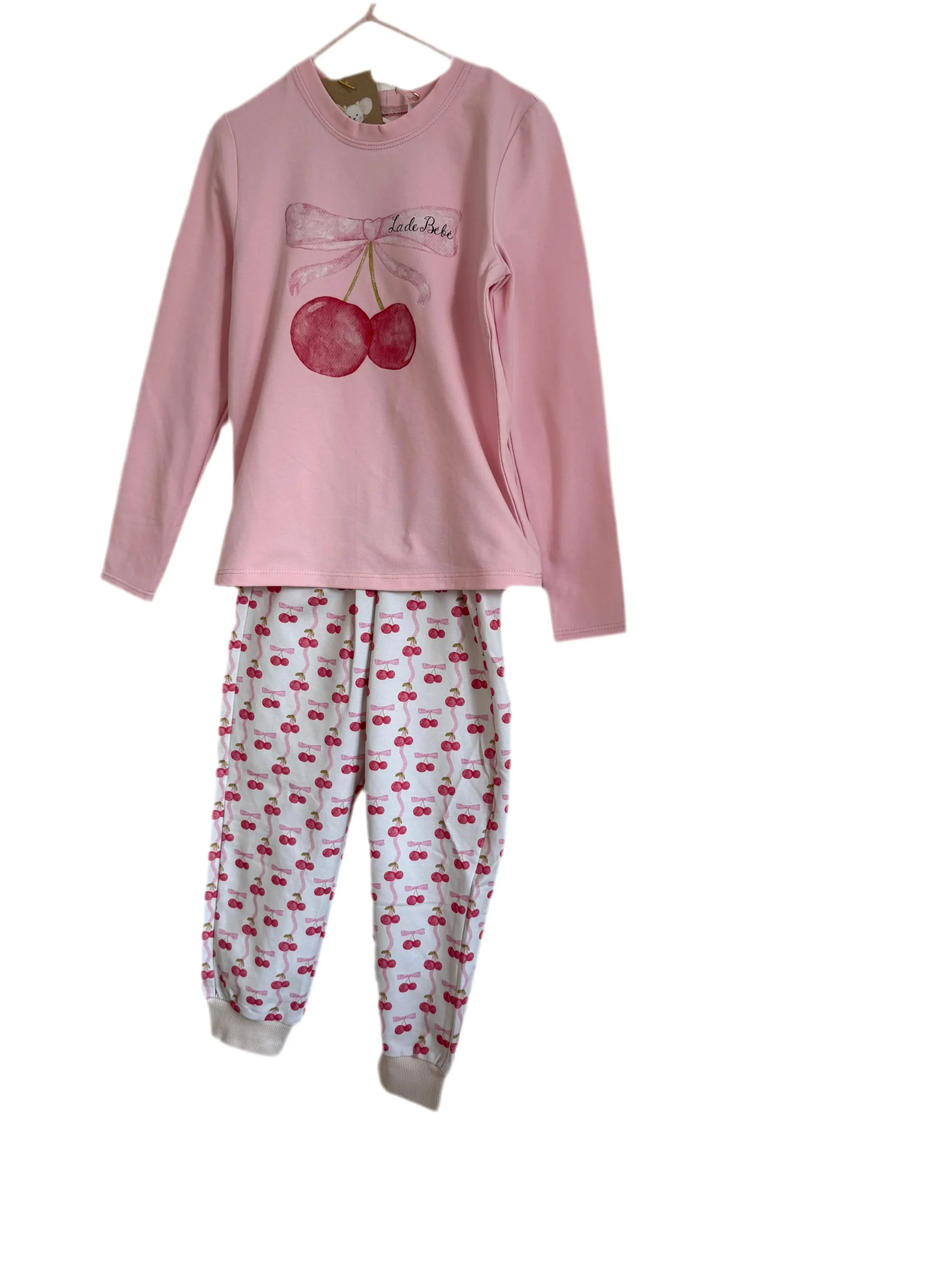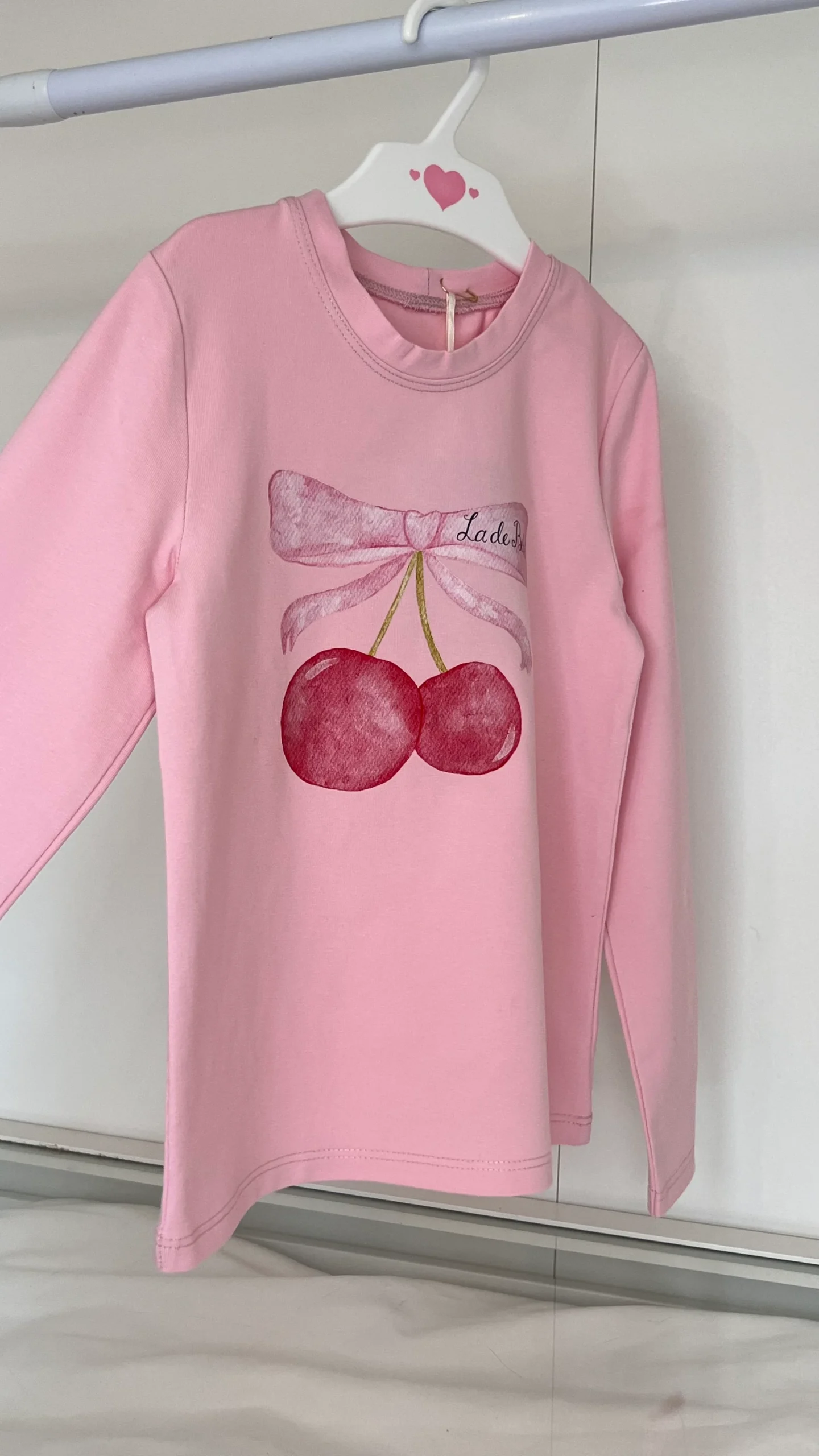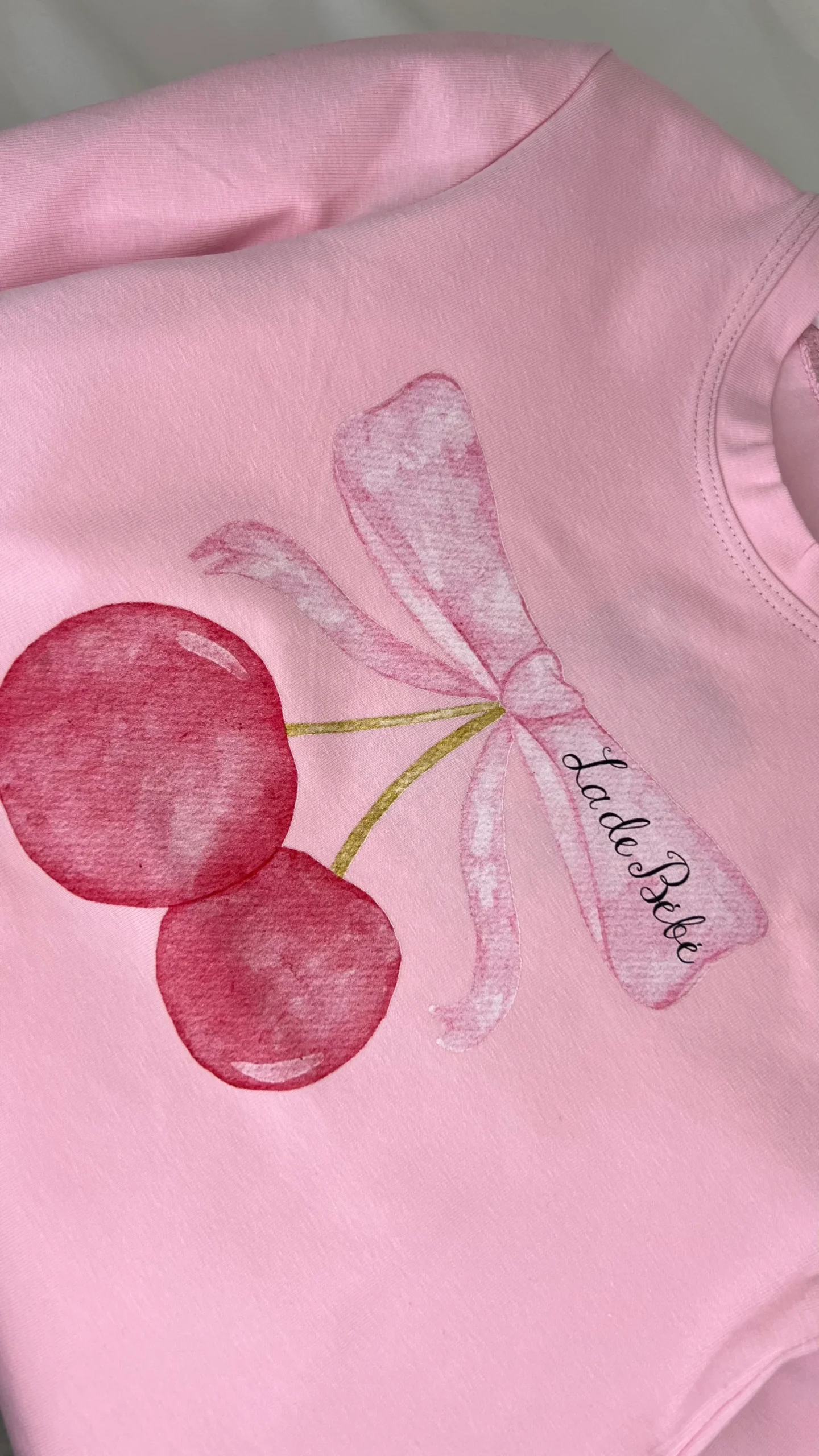 Koszulka z tkaniny organicznej z naprasowanką wiśnie idealnie pasuje do dresów z tym samym motywem lub do jeansów.